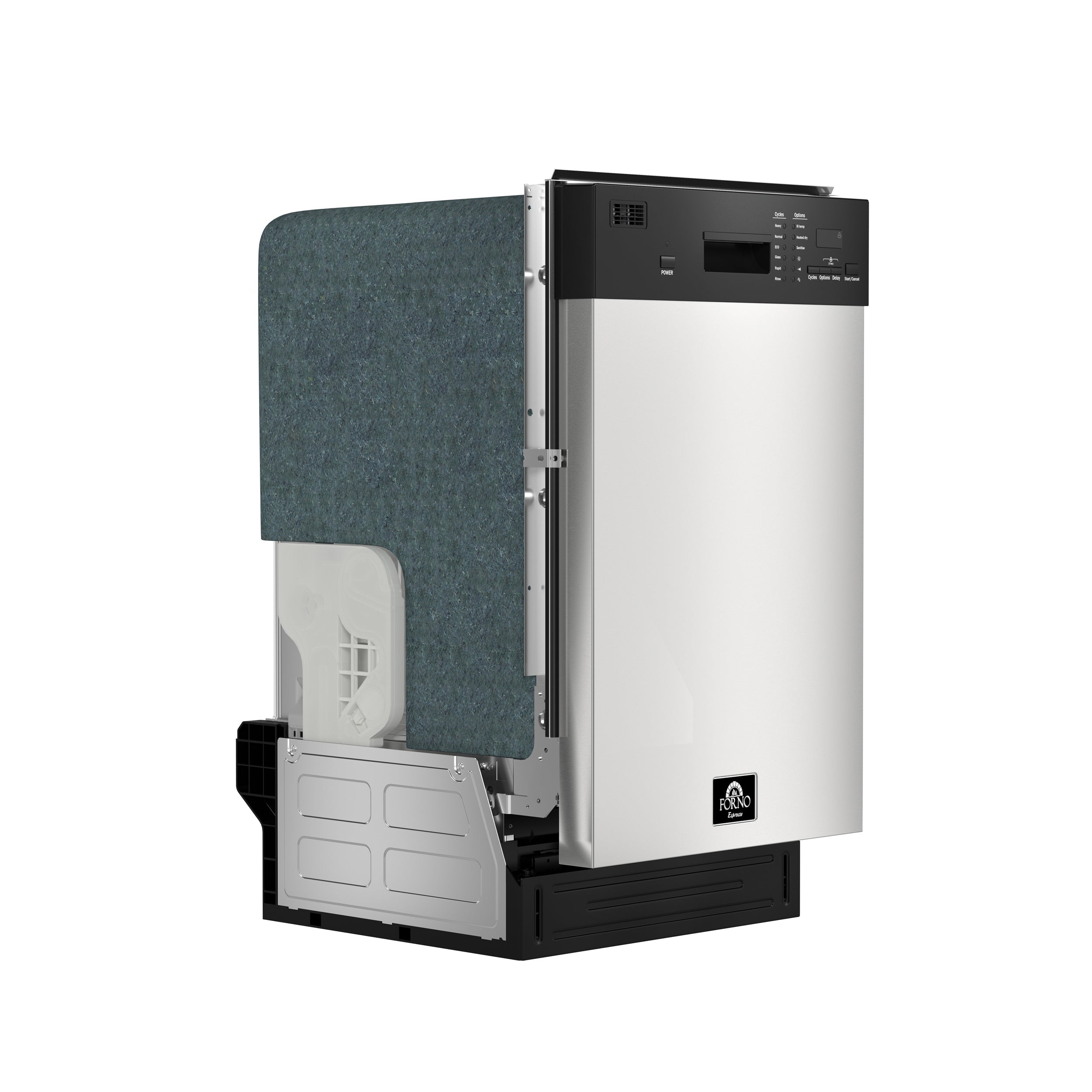 Introducing the Forno Espresso 18" Dishwasher - compact, powerful, and stylish. Ideal for small kitchens, it saves space and leaves dishes sparkling clean. The black finish is both durable and easy to maintain. With a user-friendly front control panel, choose from multiple wash cycles tailored to your needs. The adjustable upper rack, Energy Star certification, and ultra-quiet operation make this dishwasher perfect for modern households.