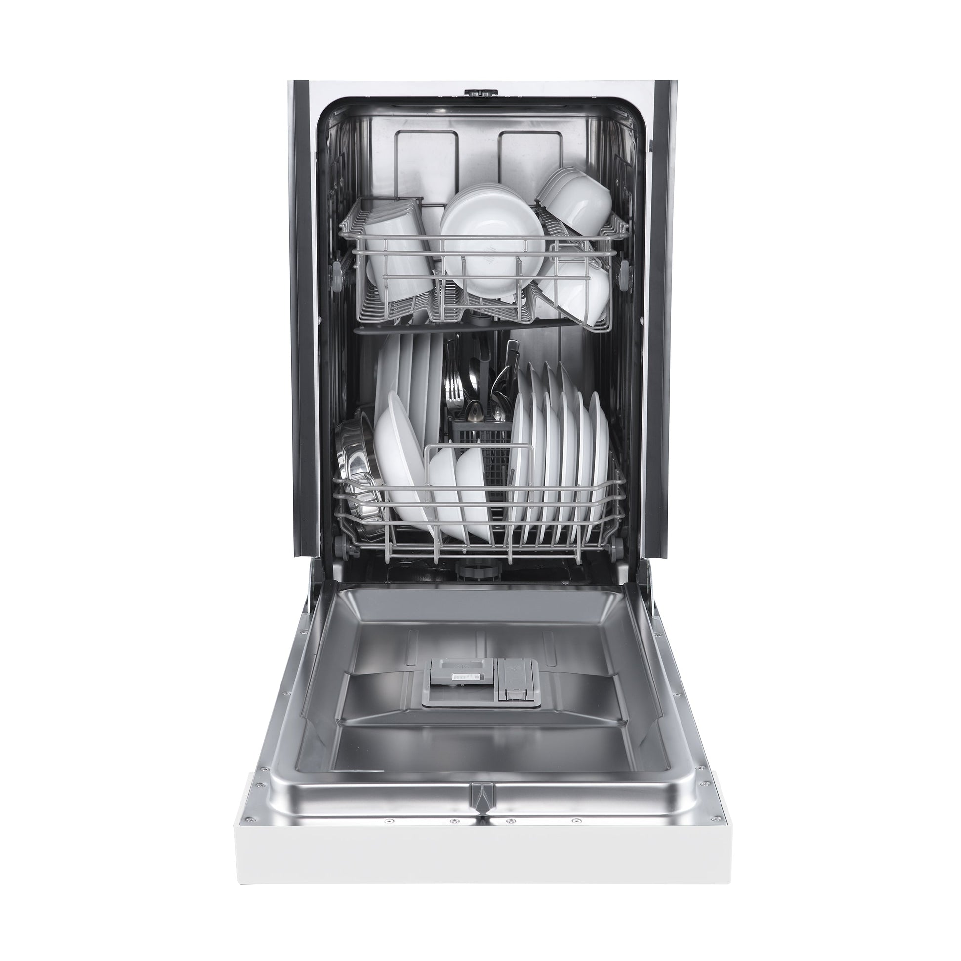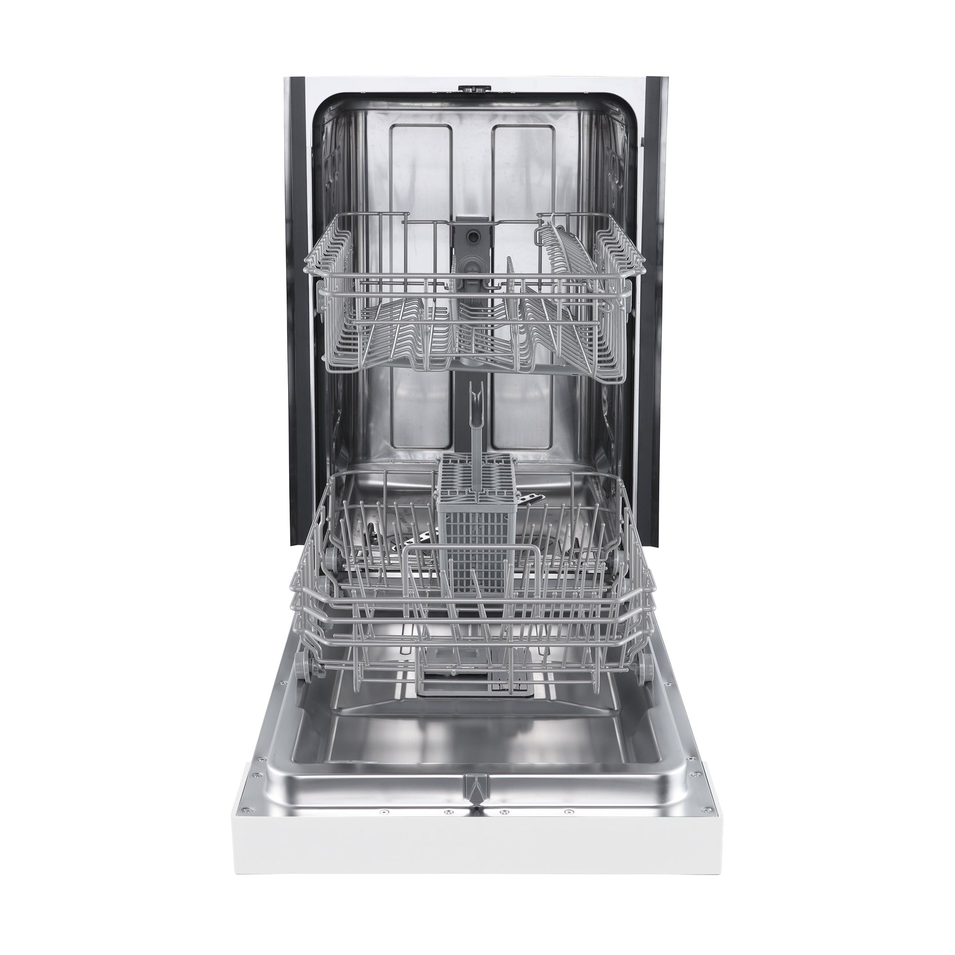 • Versatile Loading: Equipped with two racks and a removable silverware basket, providing flexible space and easy loading options.