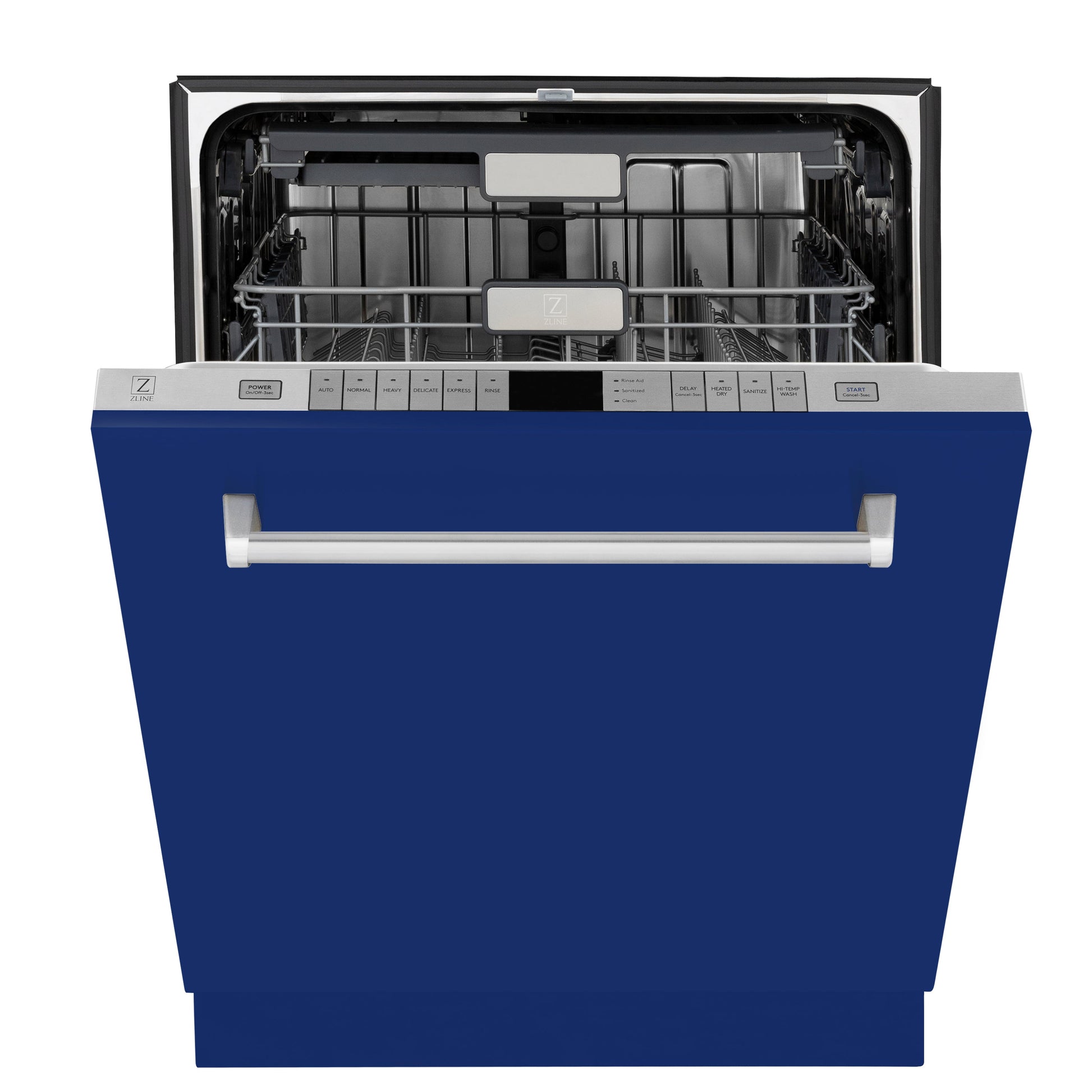 The ZLINE 24" Dishwasher (DWMTZ-BG-24) comes fully equipped with 3 racks, 14 place settings in Blue Gloss to match your custom kitchen. Clean your dishes with ease with this ZLINE Dishwasher!