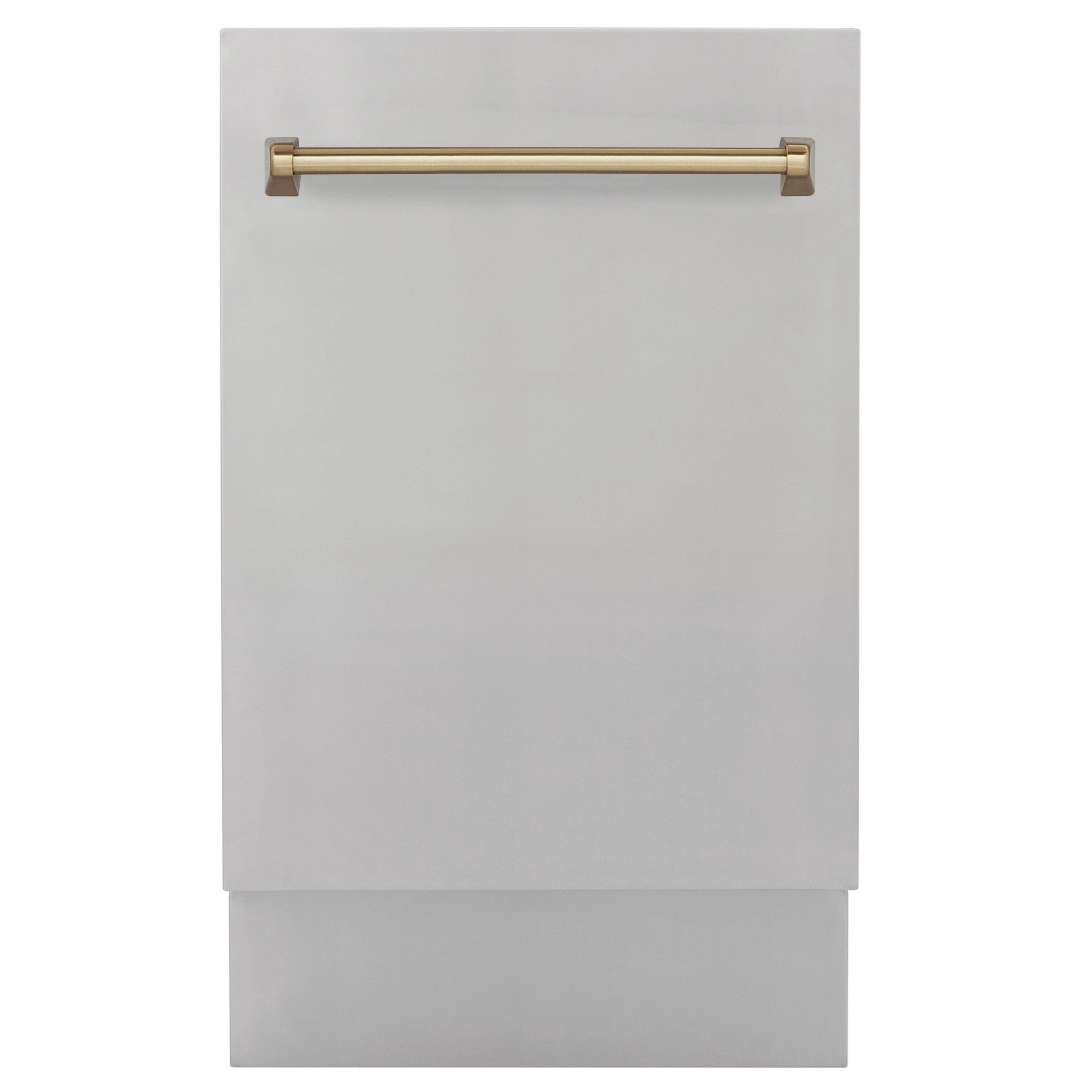 The ZLINE Autograph 18" Dishwasher (DWVZ-304-18-CB) comes fully equipped with 3 Racks, 10 place settings and a stunning Champagne Bronze Handle. Clean your dishes with ease with this ZLINE Dishwasher!