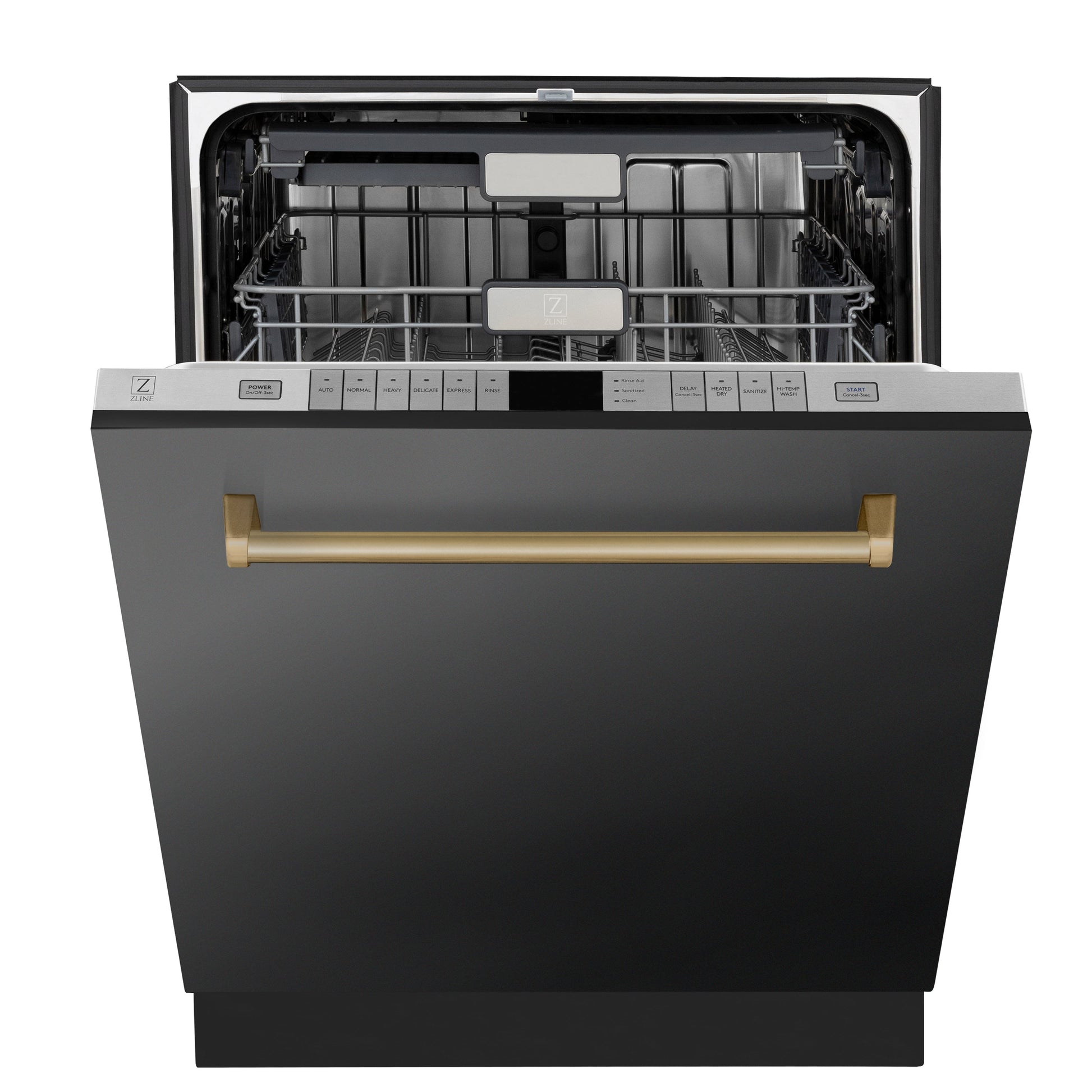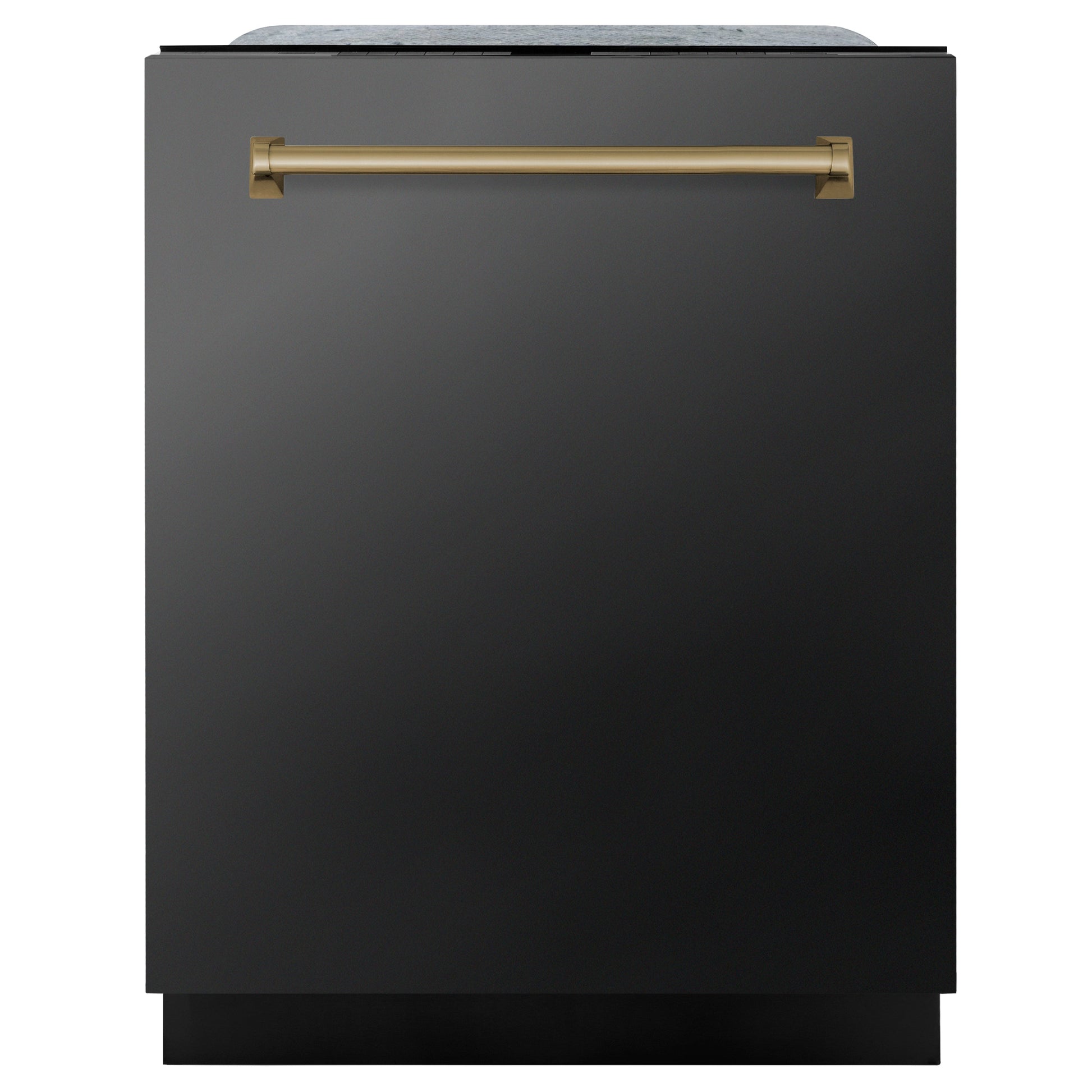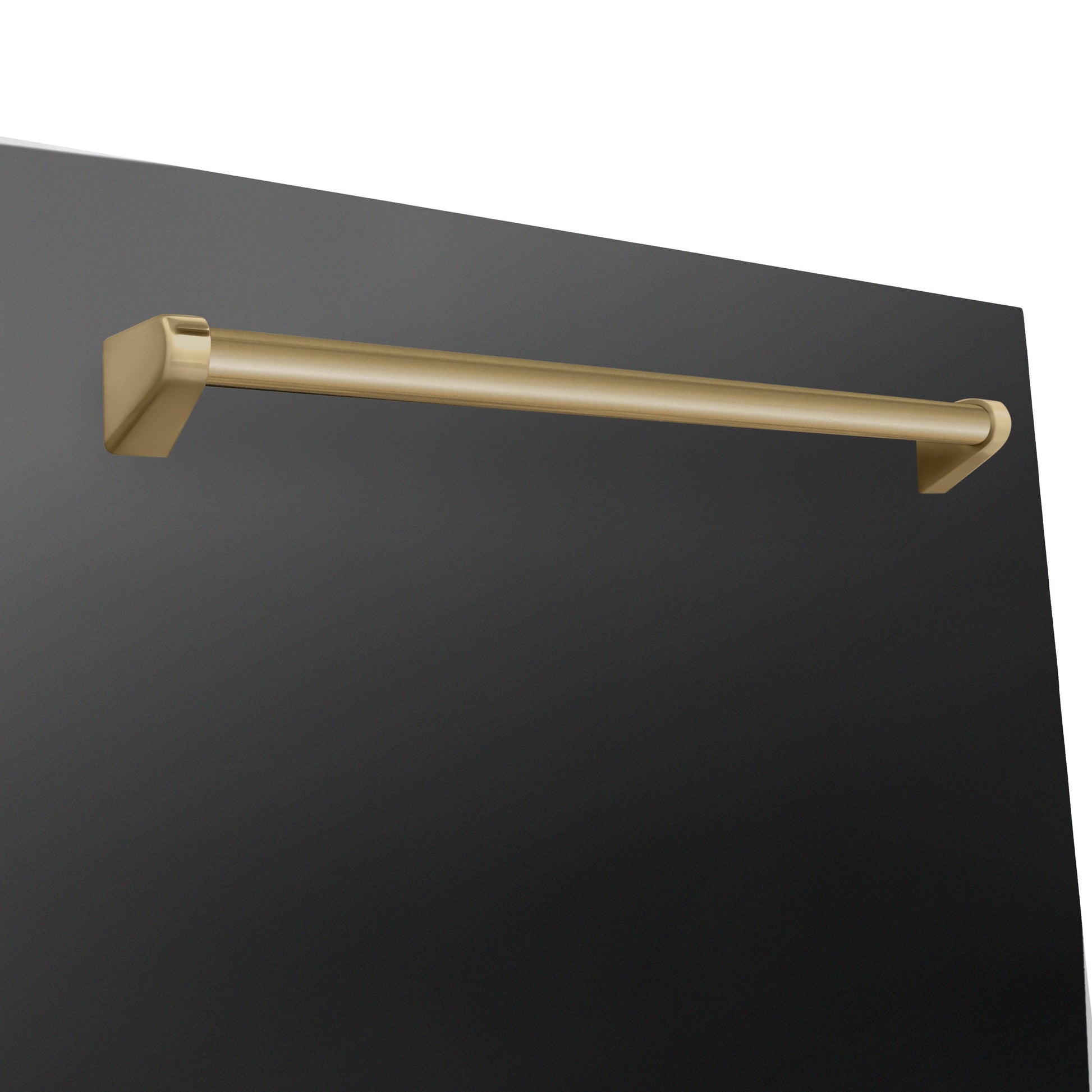 ZLINE Autograph Edition 24 In. 3rd Rack Top Touch Control Tall Tub Dishwasher in Black Stainless Steel with Champagne Bronze Handle, DWMTZ-BS-24-CB