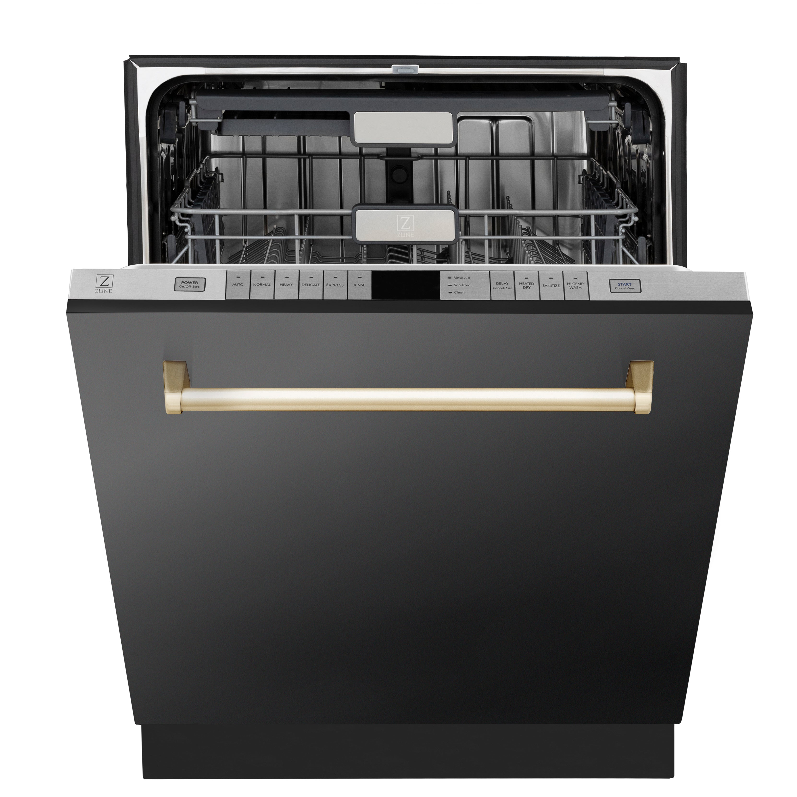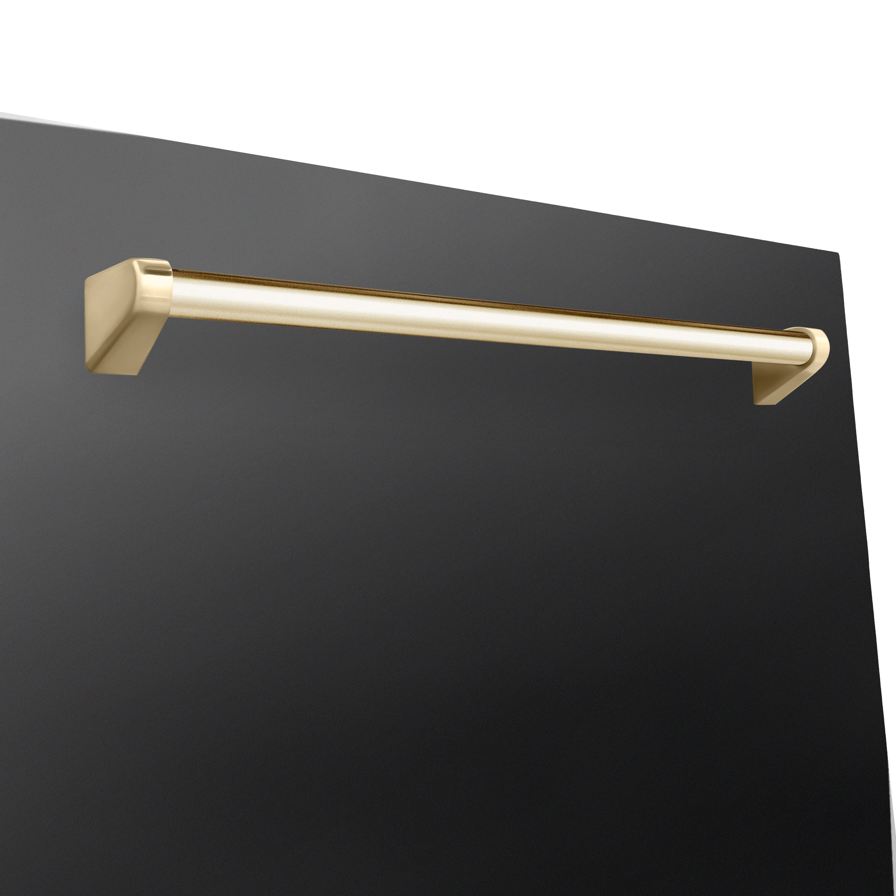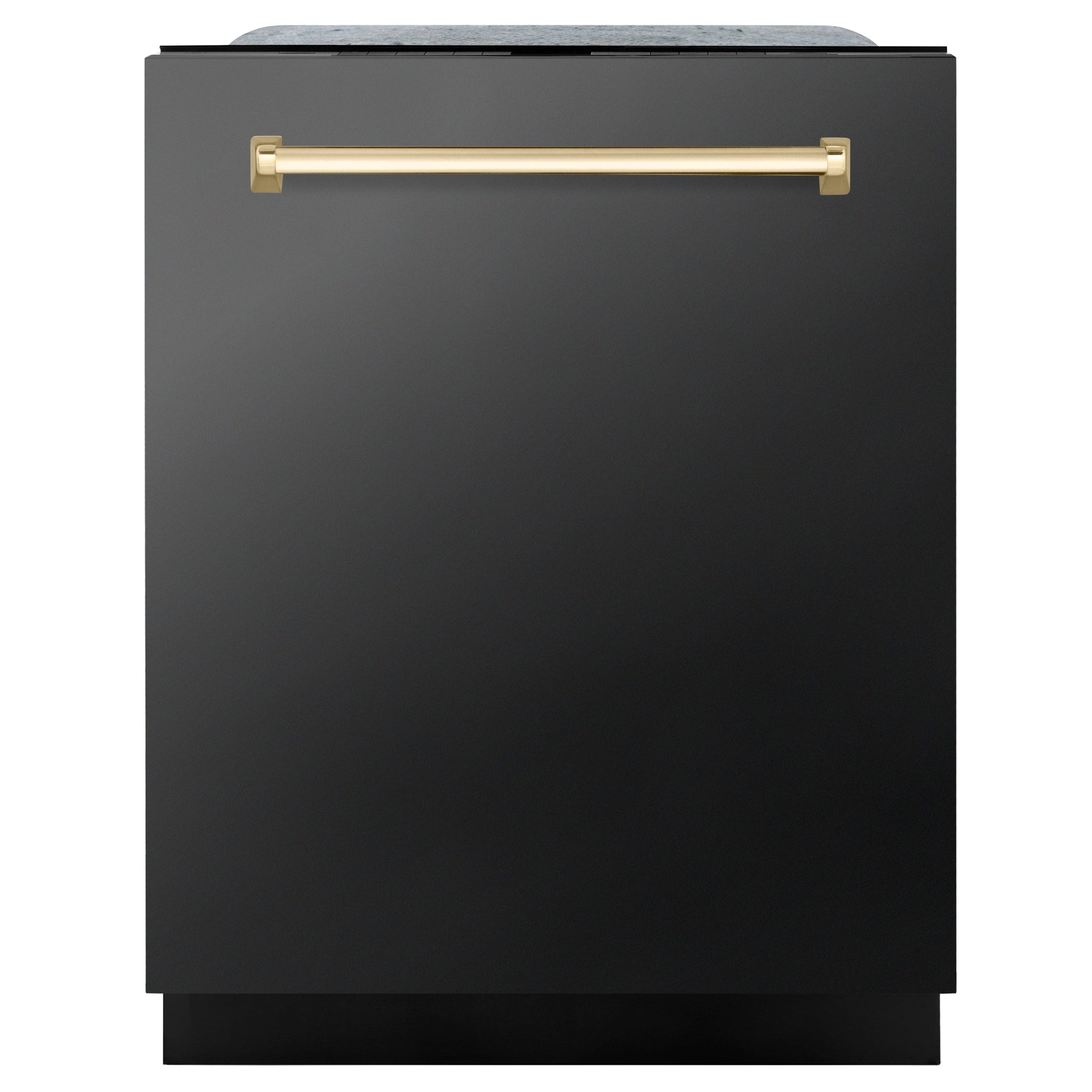 ZLINE Autograph Edition 24 In. 3rd Rack Top Touch Control Tall Tub Dishwasher in Black Stainless Steel with Gold Handle, DWMTZ-BS-24-G