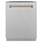 ZLINE Autograph 24" Monument Series 3rd Rack Top Touch Control Tall Tub Dishwasher with Satin Stainless Steel Panel and Champagne Bronze Handle, 45dBa, DWMTZ-SN-24-CB