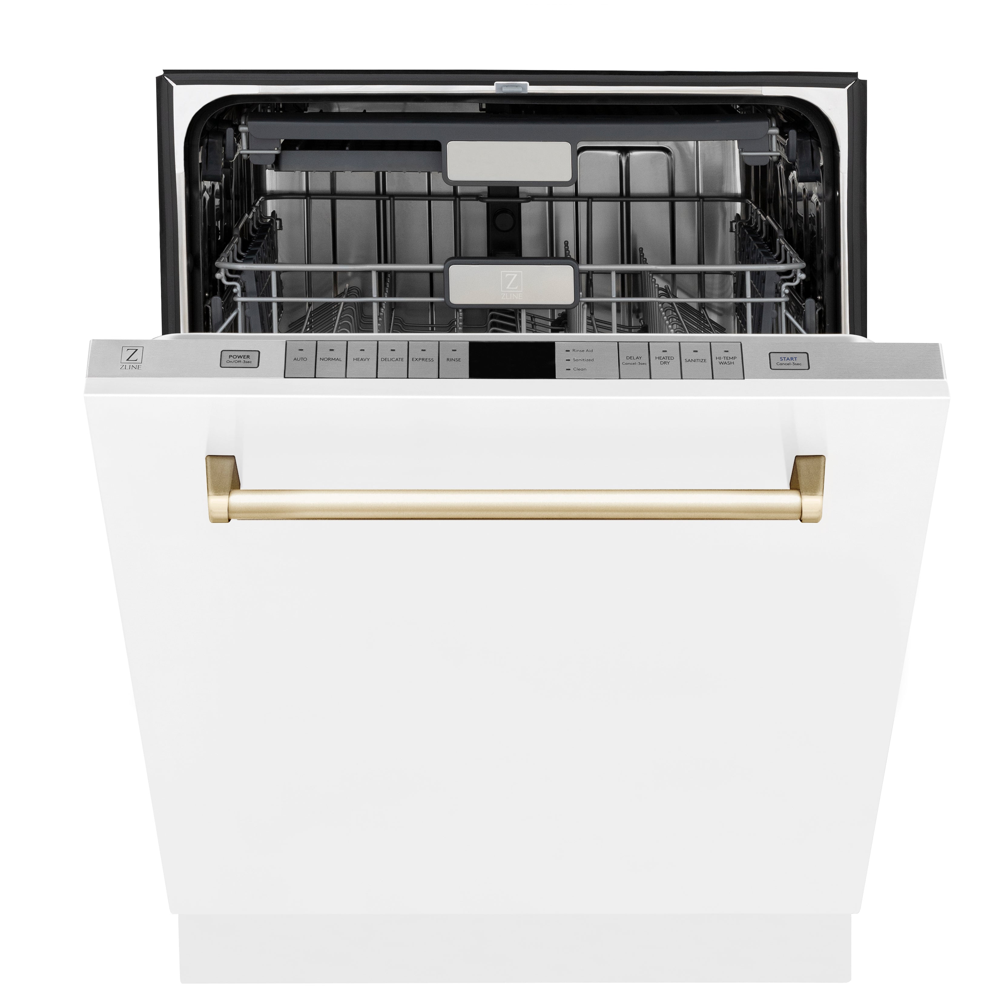 Discover stunning Attainable Luxury with the ZLINE Autograph Edition White Matte 24" Dishwasher (DWMTZ-WM-24-G)! Sporting a Gold Handle, 3 racks and 14 place settings, this dishwasher is designed to make cleaning your dishes easy and effortless. Being ENERGYSTAR Certified, this dishwasher utilizes multiple filter technology to ensure a powerful performance while being environmentally friendly. Featuring 6 wash cycles and DuraWash technology - a multi-motion system which spins clockwise and vertically throughout the cycle- this dishwasher is sure to deliver maximum performance. With two adjustable racks and a third utensil rack for added flexibility, you can customize this dishwasher to your needs. Experience the professional power and functionality of the Autograph Edition, inspired by the elegance of our home in Lake Tahoe, and enjoy a new meaning of dishwasher elegance! Ships next business day when in stock.
