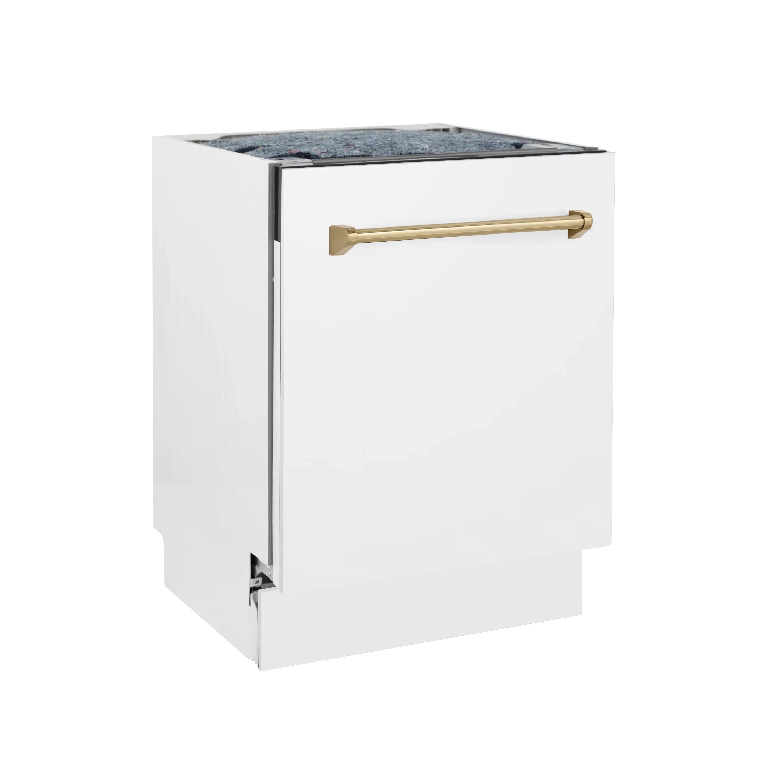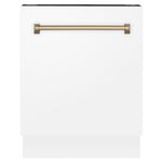 ZLINE Autograph Series 24 inch Tall Dishwasher in White Matte with Champagne Bronze Handle, DWVZ-WM-24-CB