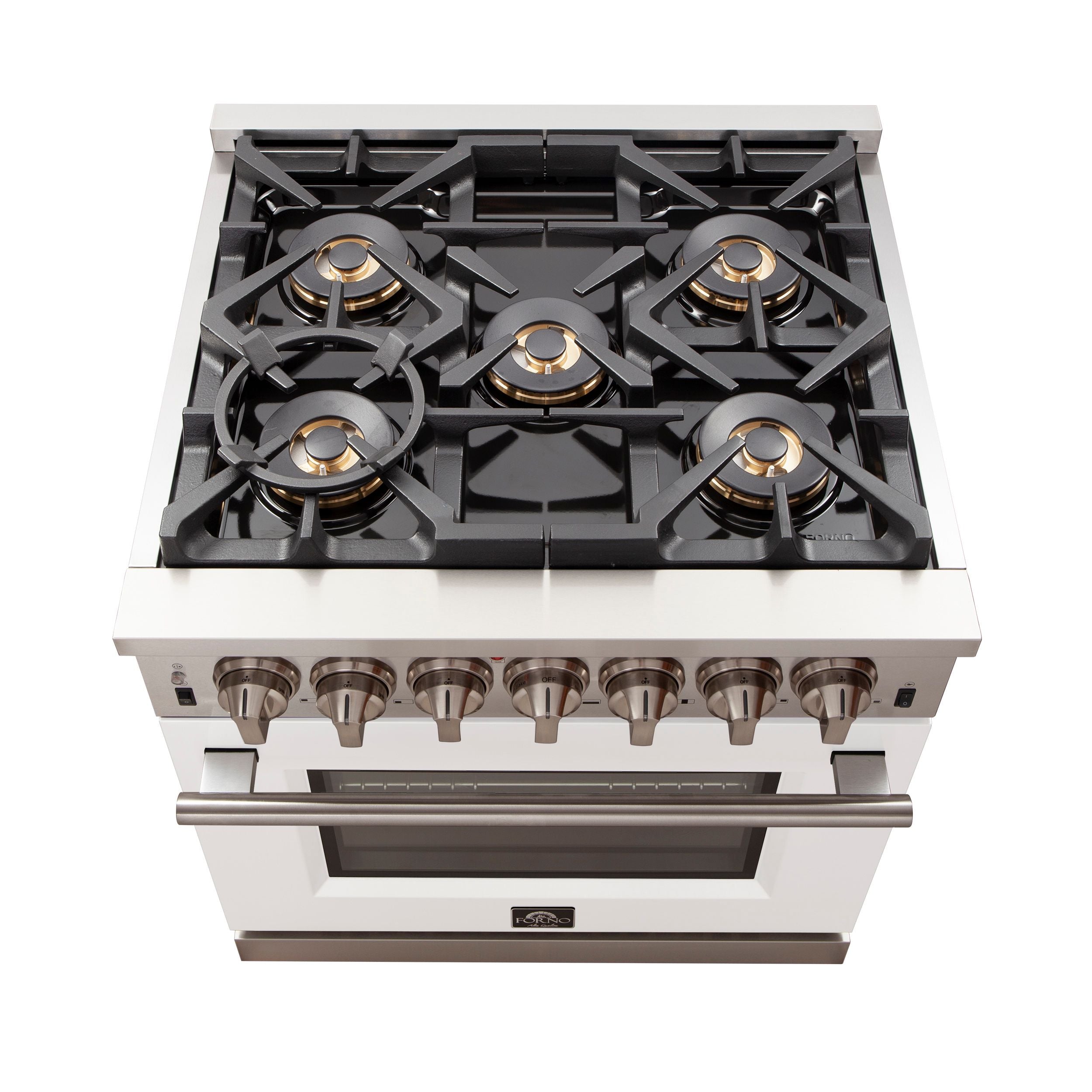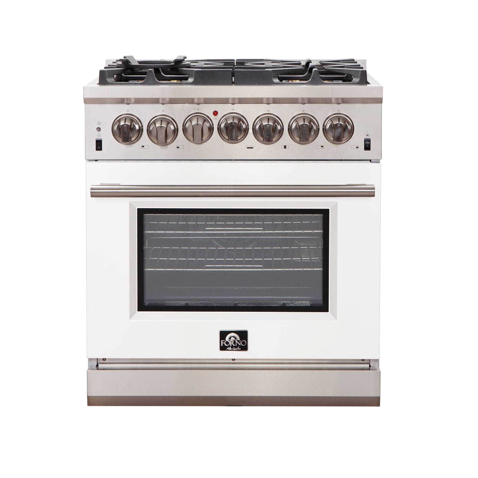 FORNO Capriasca 30″ 4.32 cu. ft. Gas Range with 5 Italian Burners in White, FFSGS6260-30WHT