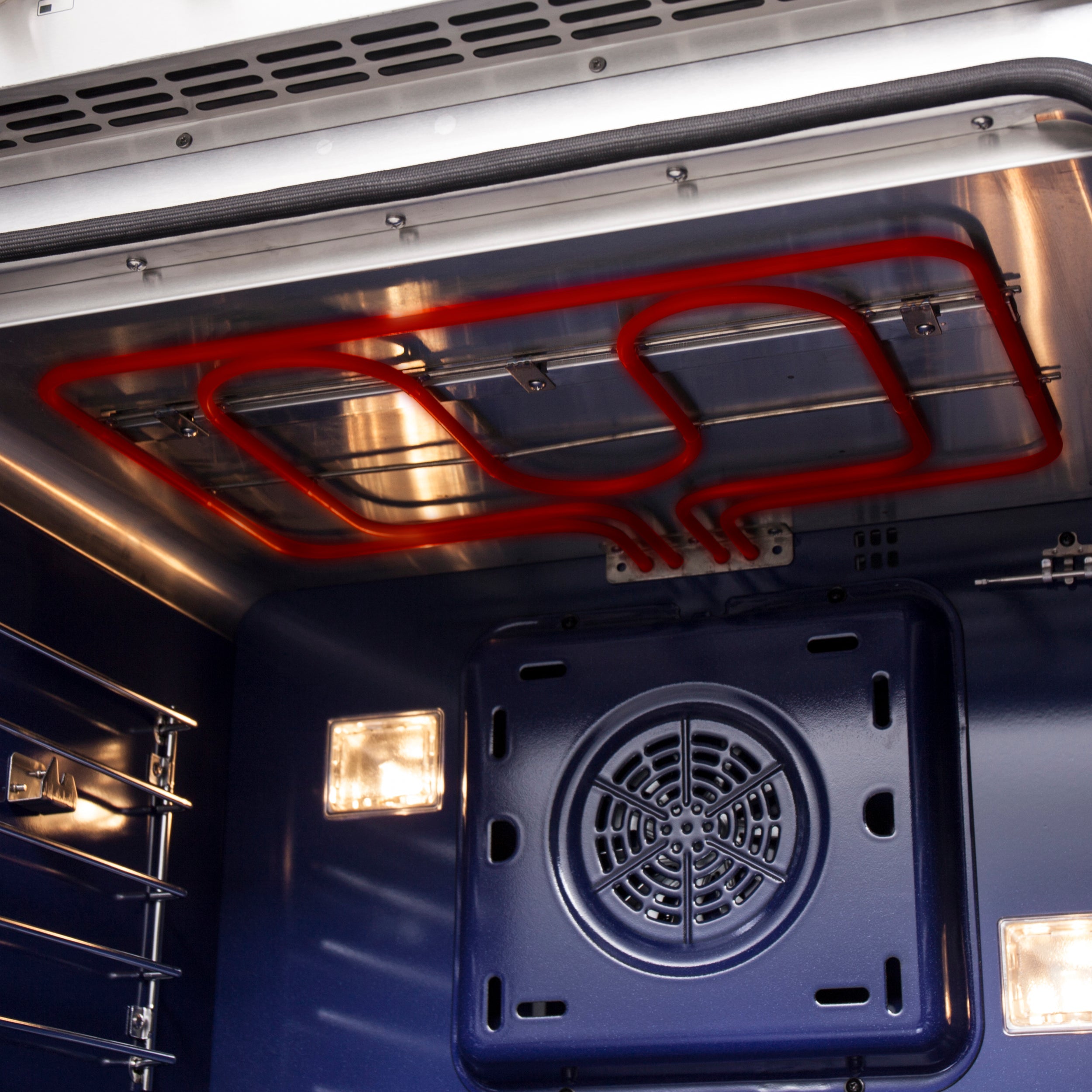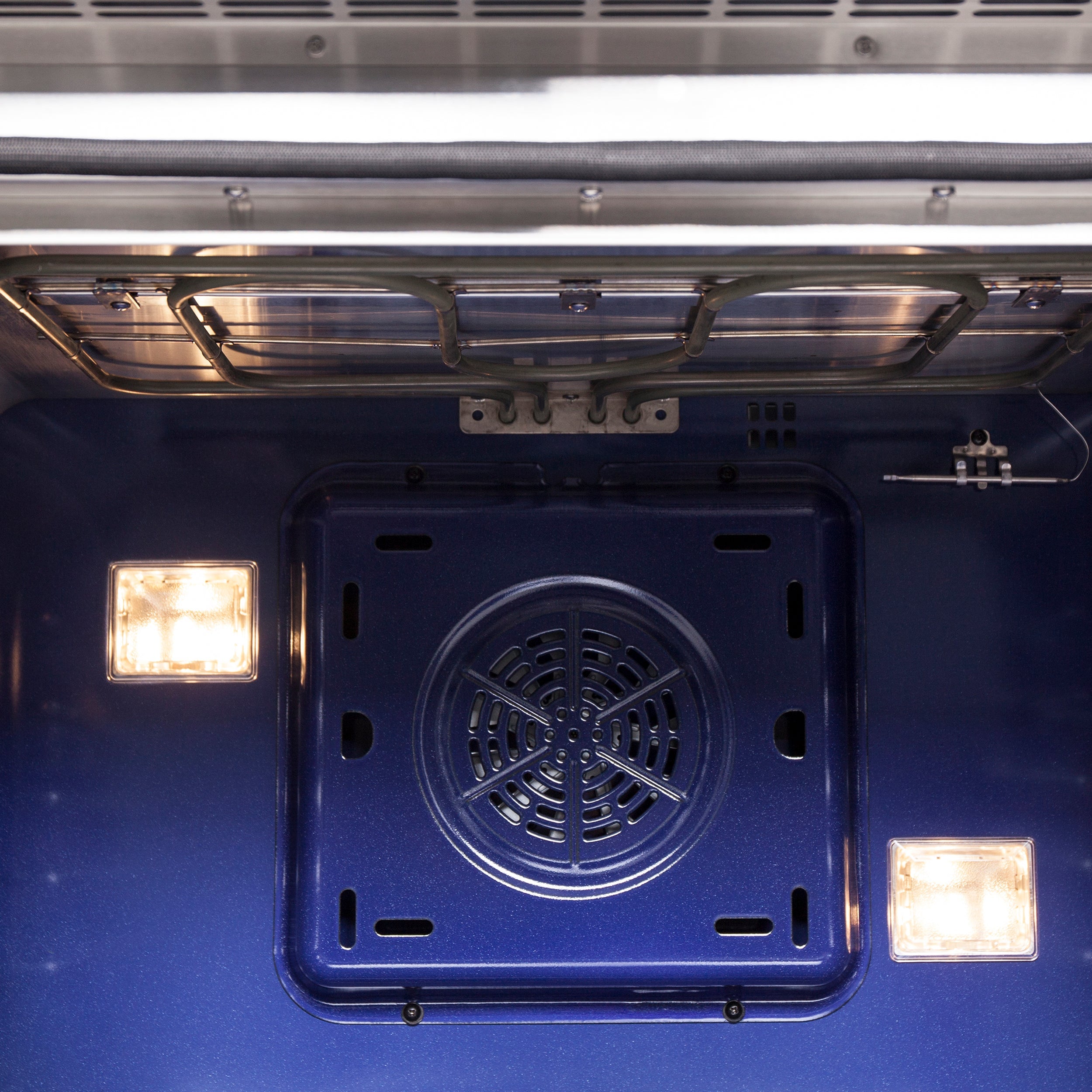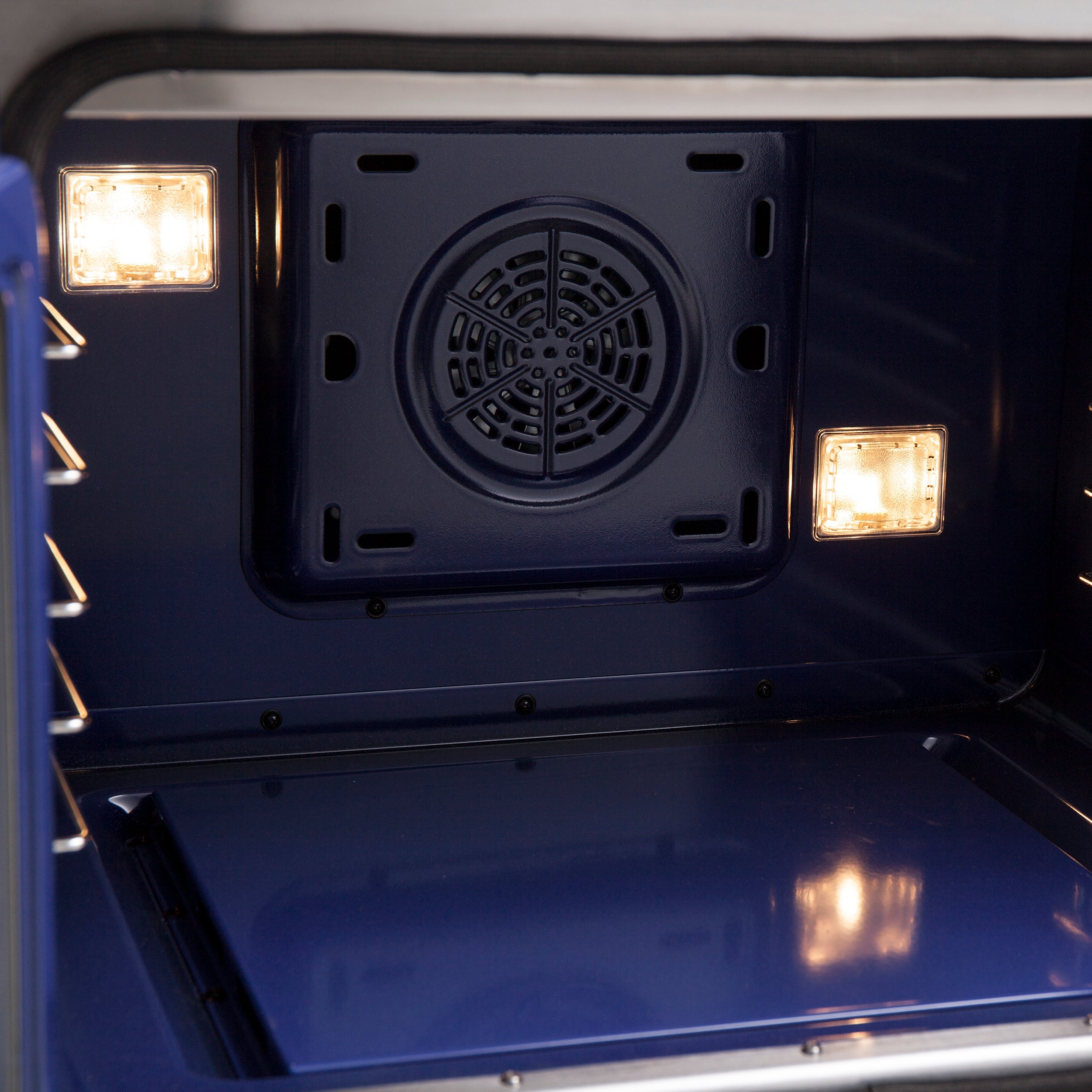 - Premium Interior: Speckled blue enamel oven cavity with 2 halogen lights provides even lighting and easy cleaning