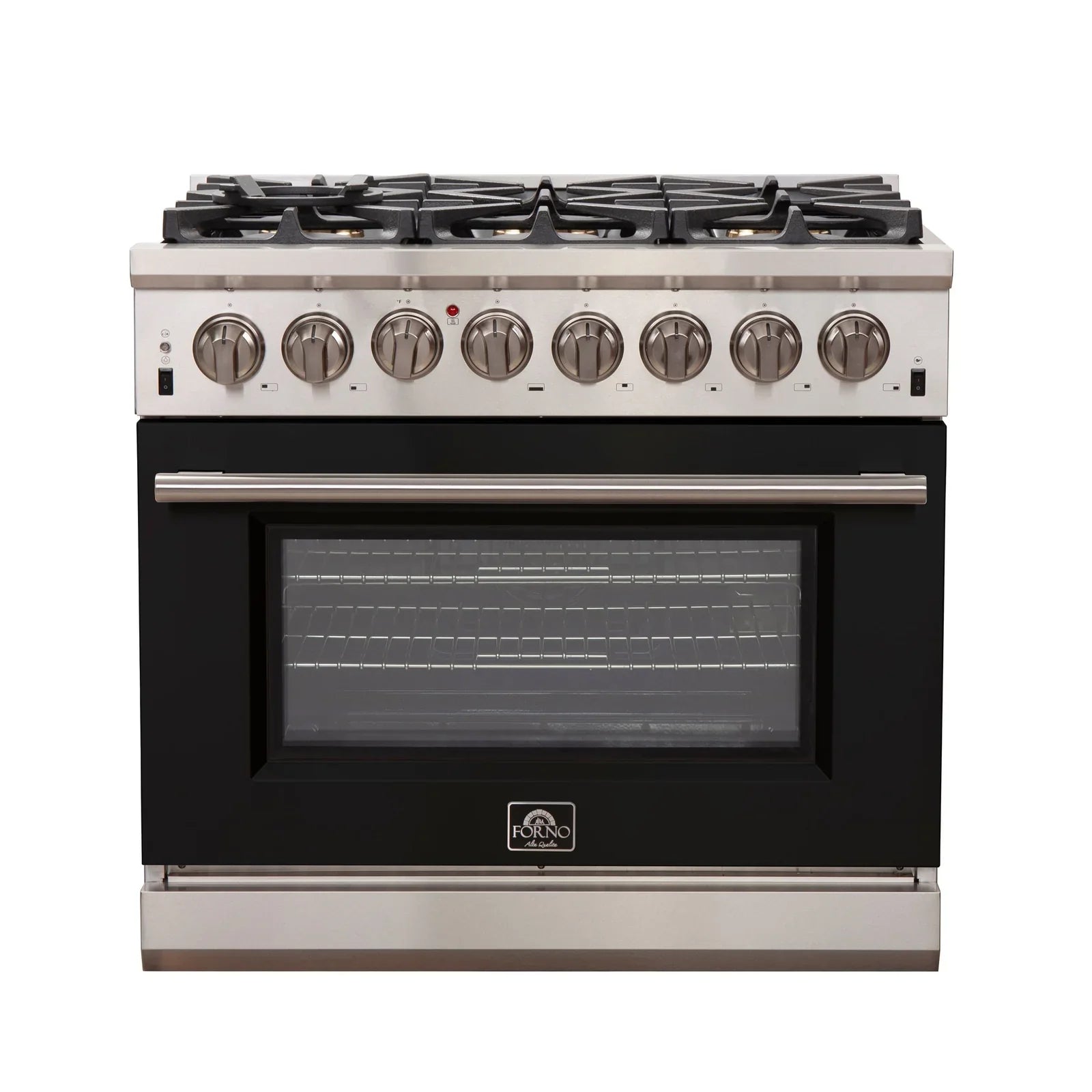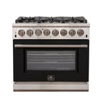 FORNO Capriasca 36" 5.36 cu. ft. Dual Fuel Range with 6 Italian Burners in Black, FFSGS6187-36BLK