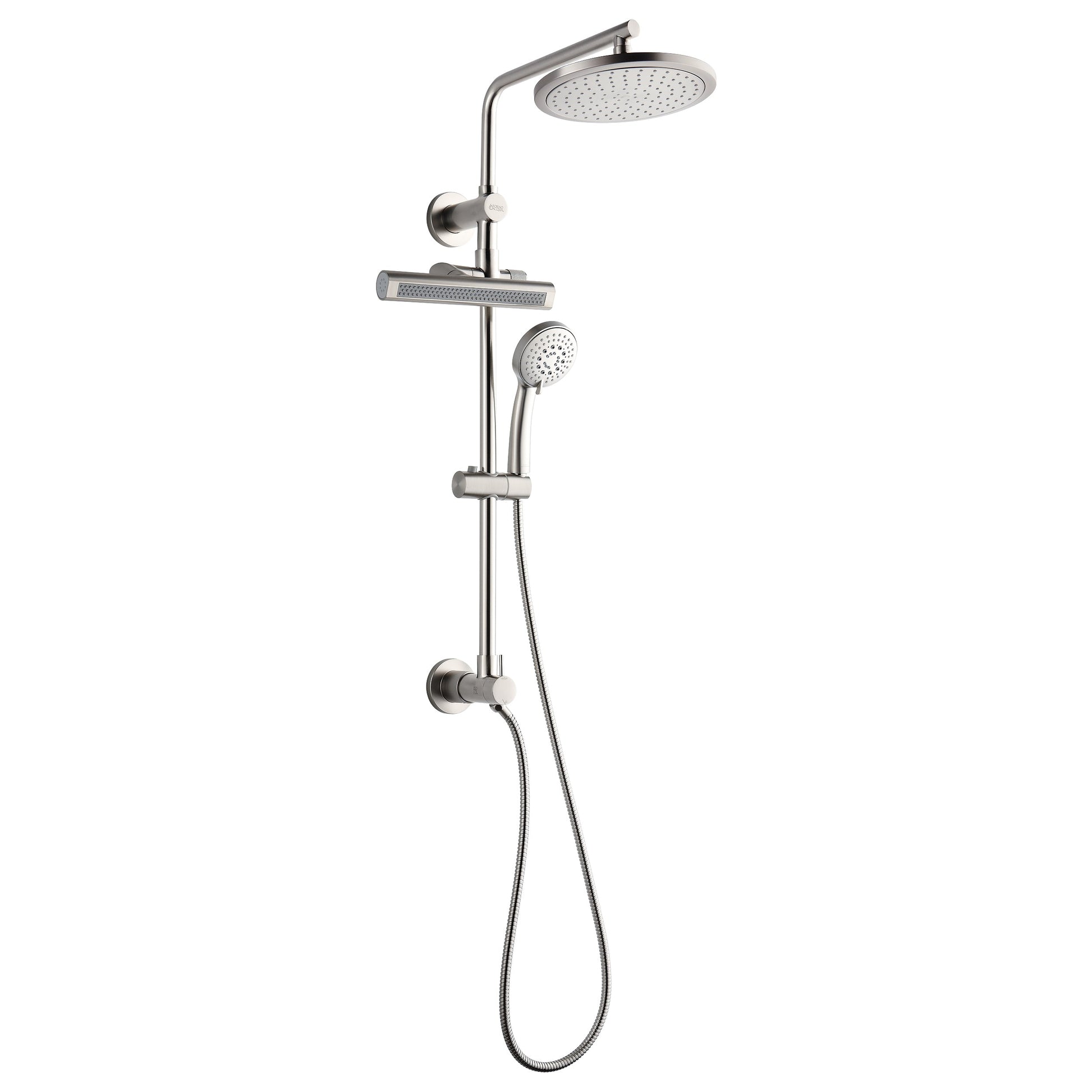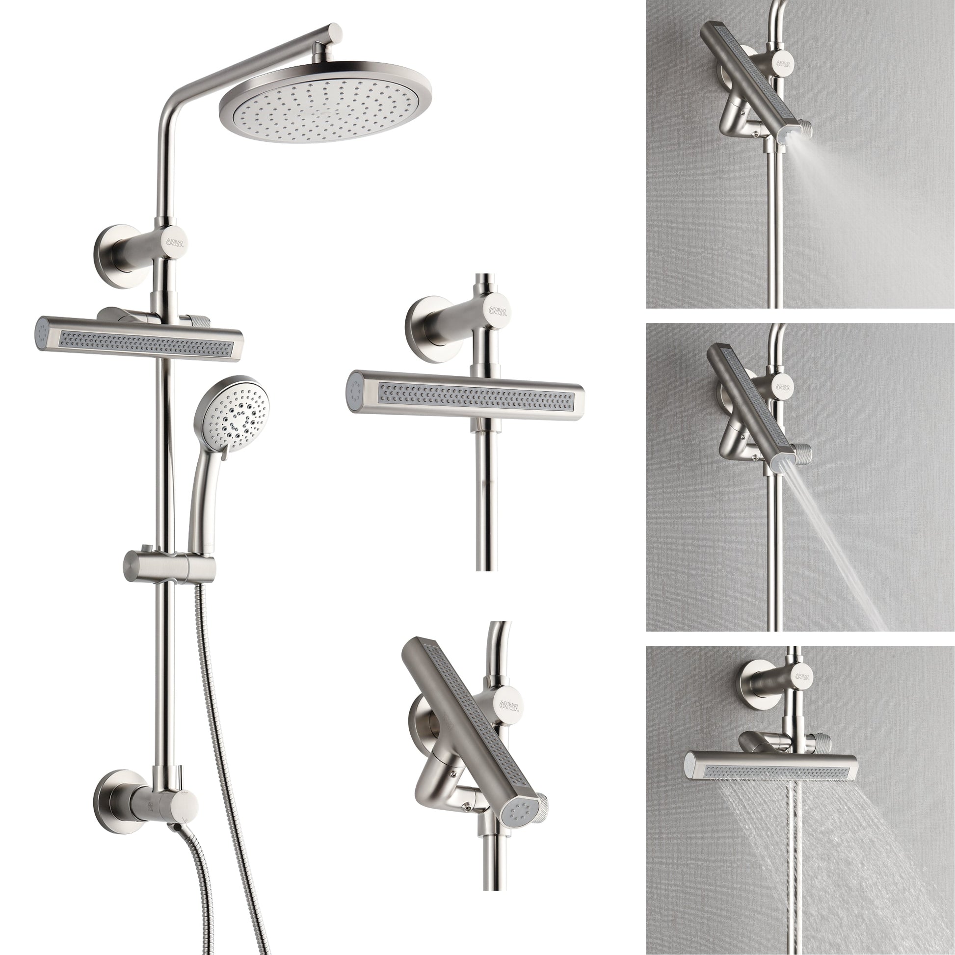 FORNO AcquaFALL Shower System with 9" Rainfall Shower Head, 5-in-1 Handheld Shower and 3 Function Body Jet in Brushed Nickel