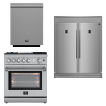 his Forno Kitchen appliance package is complete with a Professional 30" Gas Range, 60" Refrigerator, and 24" Dishwasher.
