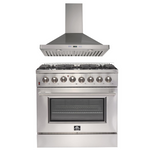 The Forno Appliance Package - 36 in. Galiano Dual Fuel Range with 6 Defendi Italian Burners in Stainless Steel and Wall Mount Range Hood. This appliance bundle is perfect for your next kitchen model, and comes at a highly affordable price! Read more below!