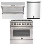 The Forno Package - 36 in. Galiano Dual Fuel Range with 8 Defendi Italian Burners in Stainless Steel, Savona Wall Mount Range Hood with Back Splash, and Dishwasher. This appliance bundle is perfect for your next kitchen model, and comes at a highly affordable price! Read more below!