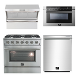 The Forno Appliance Package - 36 in. Galiano Gas Range with 6 Defendi Italian Burners in Stainless Steel, Wall Mount Range Hood, 60 Inch Refrigerator, Microwave Drawer, and Dishwasher. This appliance bundle is perfect for your next kitchen model, and comes at a highly affordable price! Read more below!