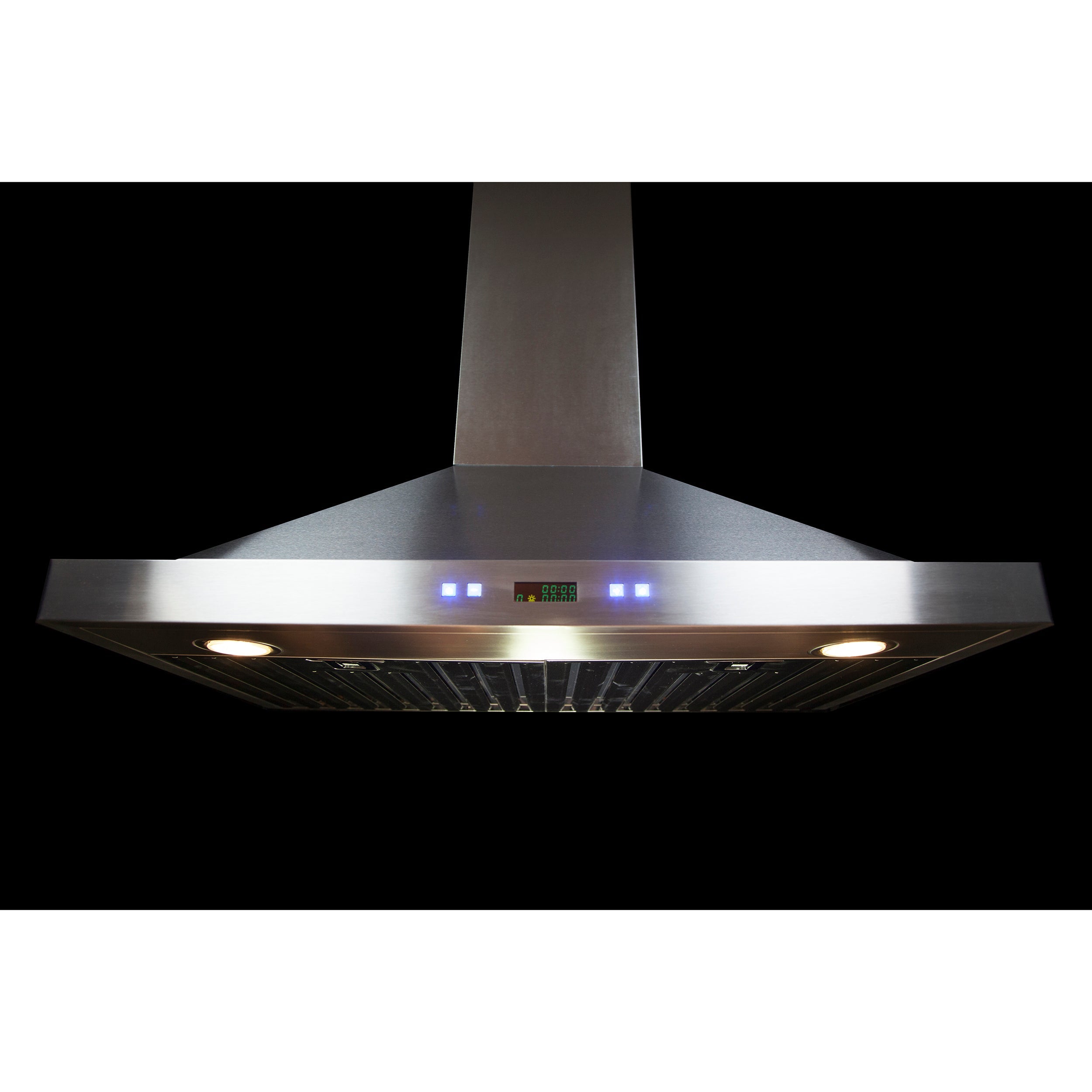 • This 36 Inch Wall Mount Range Hood by Forno comes with a power motor with up to 450 CFM of ventilation. The hood also features stainless steel cover, Aluminum Exhaust Pipe, and 4-Speed Push Button Control.