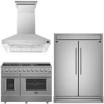 FORNO Appliance Package - 48" Gas Range, Wall Mount Range Hood and 60" Refrigerator with Modern Grill Trim, FBDL-018-04CAUS