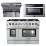 Forno Appliance Package - 48 in. Galiano Gas Range with 8 Defendi Italian Burners in Stainless Steel, Wall Mount Range Hood and Microwave Drawer, AP-FFSGS6244-48-3. The bundle is perfect for your next kitchen model, and comes at a highly affordable price! Read more below!