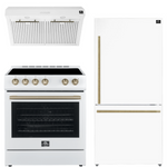 Forno Espresso 30" Electric Range in White with Antique Brass Handles, FFSEL6012-30WHTForno Espresso 30" Under Cabinet Range Hood in White with Antique Brass Handles, FRHUC5255-30WHT