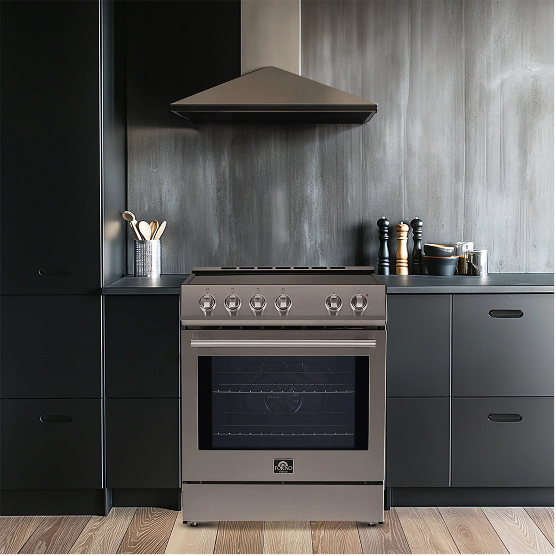 FORNO Espresso Package - 30" Electric Range, Under Cabinet Range Hood, 31" Refrigerator and Tall Tub Dishwasher, FBDL-010-01US