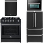 Upgrade your kitchen with the Forno Espresso Package, featuring a 30" Gas Range, 36" Refrigerator with Ice Maker, Dishwasher and 24" Microwave Oven all in a sleek Black finish with silver accents. The 30" Gas Range boasts a powerful 39,500 BTU cooktop, five sealed burners, and a 5.0 cu.ft. convection oven for precision cooking. The 36” French Door Refrigerator offers 19.2 cu.ft. of customizable storage with fast cooling and an automatic ice maker. Completing the set, the quiet 24” Tall-Tub Dishwasher offers a 14-place setting capacity, multiple wash programs, and ENERGY STAR certification for eco-friendly performance. The 24" built-in microwave drawer has versatile cooking options including broil and convection, with a spacious 1.6 cu. ft. capacity.