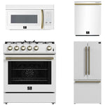 Bring style and performance to your kitchen with the FORNO Espresso Package in a crisp white finish accented with antique brass. This four-piece set includes a high-performance gas range, versatile over-the-range microwave, spacious refrigerator with ice maker, and a quiet, efficient dishwasher—perfectly crafted to handle all your cooking and entertaining needs.