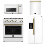 The FORNO Espresso Package in white with antique brass accents brings timeless elegance and modern performance to your kitchen. Featuring a powerful gas range, efficient over-the-range microwave, spacious refrigerator with water dispenser and ice maker, and a quiet, high-capacity dishwasher, this package blends style with functionality for the ultimate cooking and cleaning experience.