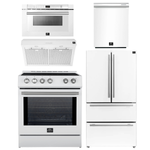 FORNO Espresso Package - 30" Induction Range, Range Hood, 36" Refrigerator with Ice Maker, Dishwasher and 24" Microwave Drawer in White with Stainless Steel Accents