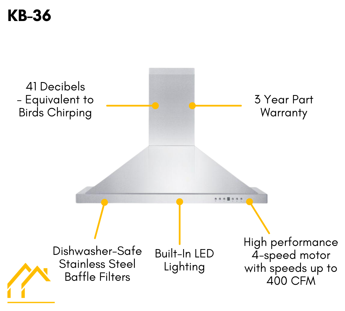 - Clean and quiet is the name of the game and this hood is rated at less than 50 decibels - meaning the ambiance of your dinner conversations will not be disturbed while your range hood is at full power.