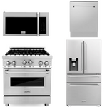 This ZLINE kitchen appliance package has a powerful 30 Inch Dual Fuel Range, Refrigerator with Water and Ice Dispenser, Microwave, and Dishwasher.