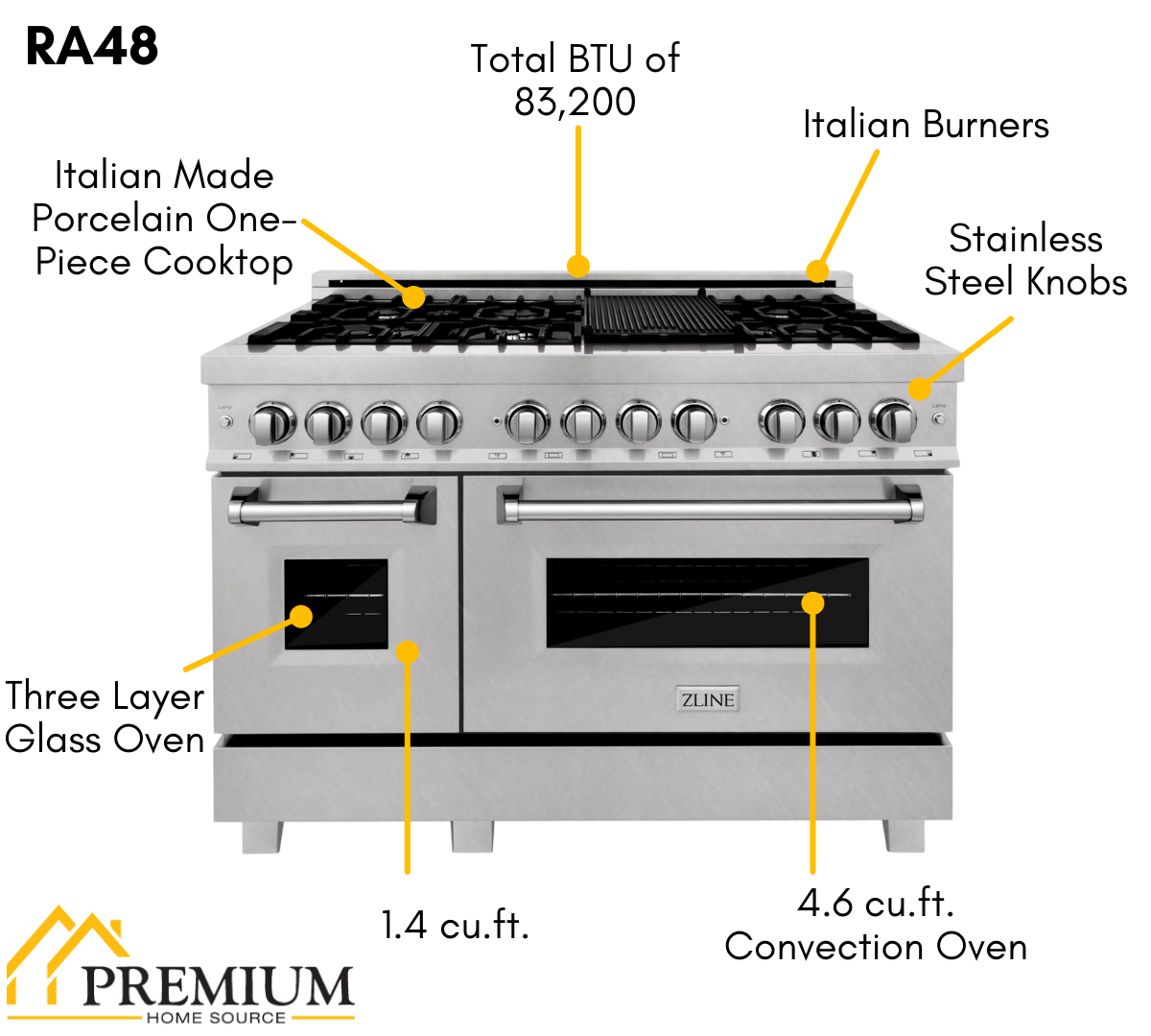 - ZLINE 48 in. Professional Gas Burner and Electric Oven in Stainless Steel, RA48