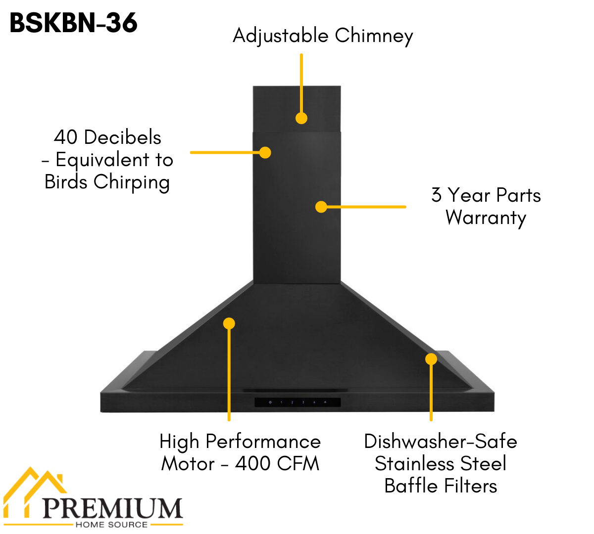 - Professional Grade. Classic 430 grade black stainless steel, this range hood contains rust, temperature, and corrosion-resistant properties to ensure a durable vent hood that will last for years to come