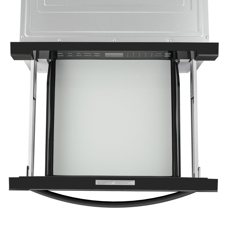 Maximize your kitchen space and elevate its style with the Cosmo Haven 24" Built-in Microwave Drawer. Designed for seamless integration into your cabinetry, this top-loading microwave eliminates countertop clutter while delivering powerful performance. With 1000 watts of cooking power and 11 variable power levels, it ensures precision heating for every dish. Effortlessly operate the unit with a sleek, touch control panel and take advantage of automatic presets like melt, soften, popcorn, and beverage. Defrosting is simple and efficient, thanks to both weight and time options, and an included rack to optimize space. Safety features such as a child lock provide peace of mind, while the elegant matte black finish complements any modern kitchen aesthetic. As part of the Haven Collection, this microwave offers the perfect blend of function and contemporary design.