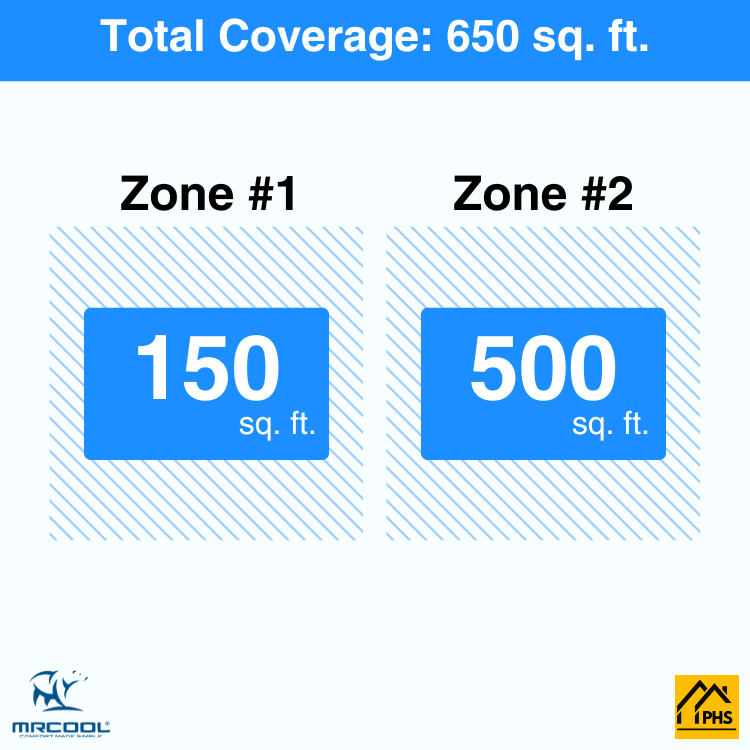 - Two Rooms, Perfect Comfort: Heat or cool two spaces that are 150 sq. ft. and 500 sq. ft. each with independent temperature control for personalized comfort.