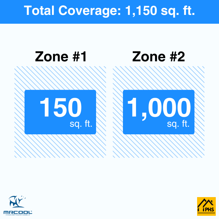 • Two Rooms, Perfect Comfort: Heat or cool two spaces that are 150 sq. ft. and 1,000 sq. ft. each with independent temperature control for personalized comfort.