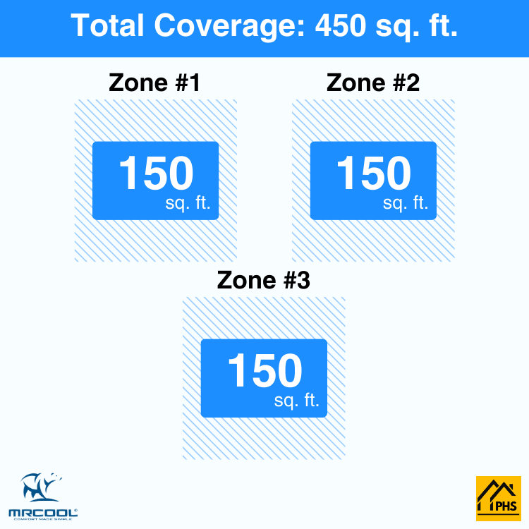 - Three Rooms, Perfect Comfort: Heat or cool three spaces that are 150 sq. ft., 150 sq. ft. and 150 sq. ft. each with independent temperature control for personalized comfort.