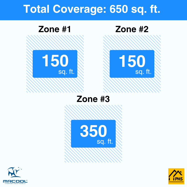• Three Rooms, Perfect Comfort: Heat or cool three spaces that are 150 sq. ft., 150 sq. ft. and 350 sq. ft. each with independent temperature control for personalized comfort.