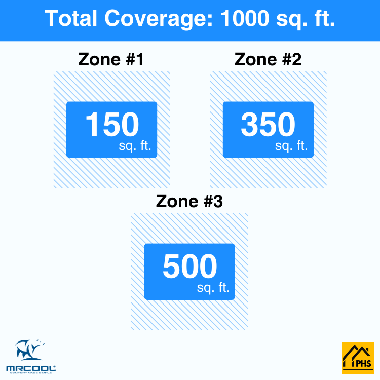 • Three Rooms, Perfect Comfort: Heat or cool three spaces that are 150 sq. ft., 350 sq. ft. and 500 sq. ft. each with independent temperature control for personalized comfort.