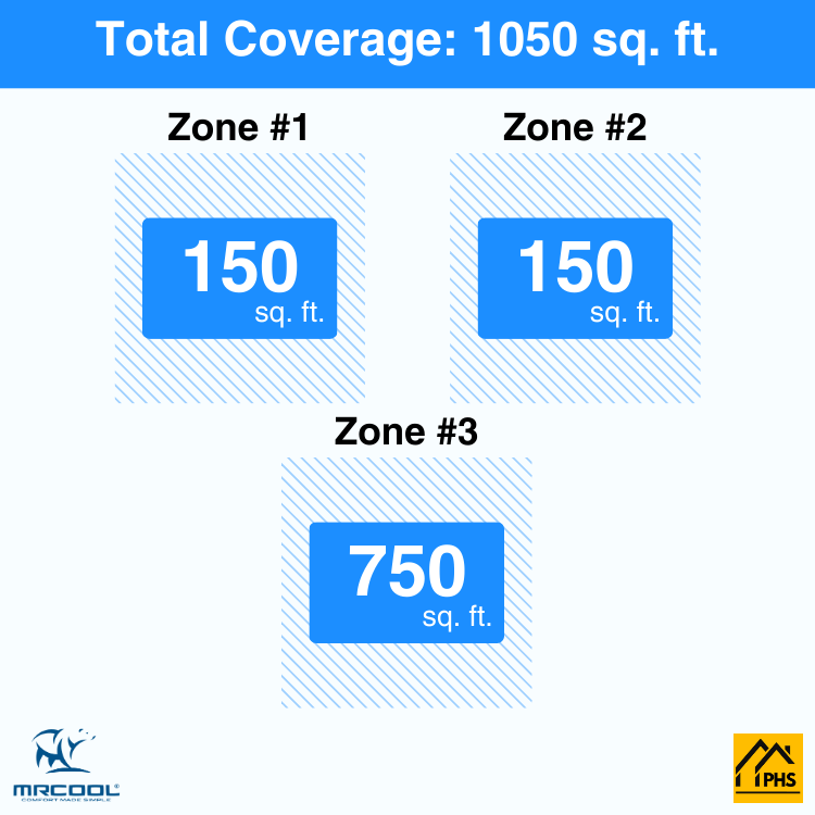 • Three Rooms, Perfect Comfort: Heat or cool three spaces that are 150 sq. ft., 150 sq. ft. and 750 sq. ft. each with independent temperature control for personalized comfort.