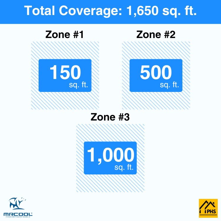 • Three Rooms, Perfect Comfort: Heat or cool three spaces that are 150 sq. ft., 500 sq. ft. and 1,000 sq. ft. each with independent temperature control for personalized comfort.
