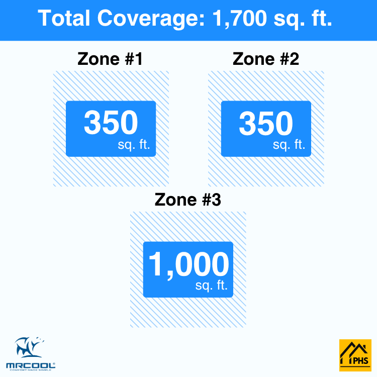 - Three Rooms, Perfect Comfort: Heat or cool three spaces that are 350 sq. ft., 350 sq. ft. and 1,000 sq. ft. each with independent temperature control for personalized comfort.