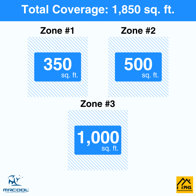 - Three Rooms, Perfect Comfort: Heat or cool three spaces that are 350 sq. ft., 500 sq. ft. and 1,000 sq. ft. each with independent temperature control for personalized comfort.