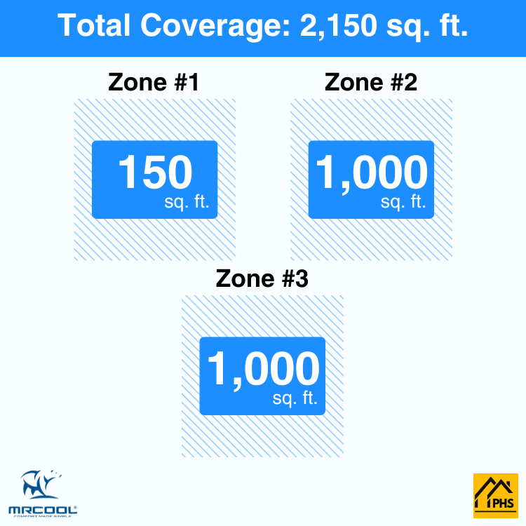 - Three Rooms, Perfect Comfort: Heat or cool three spaces that are 150 sq. ft., 1,000 sq. ft. and 1,000 sq. ft. each with independent temperature control for personalized comfort.