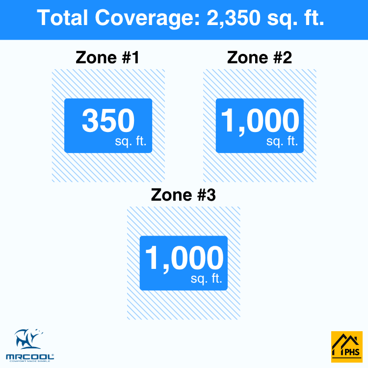 • Three Rooms, Perfect Comfort: Heat or cool three spaces that are 350 sq. ft., 1,000 sq. ft. and 1,000 sq. ft. each with independent temperature control for personalized comfort.