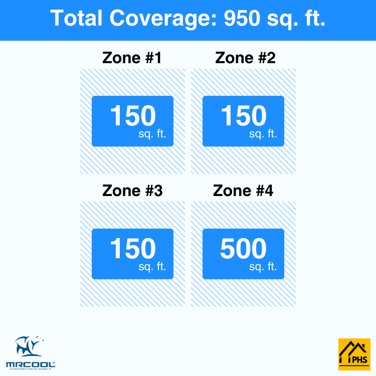• Four Rooms, Perfect Comfort: Heat or cool four spaces that are 150 sq. ft., 150 sq. ft., 150 sq. ft. and 500 sq. ft. each with independent temperature control for personalized comfort.
