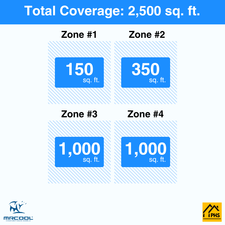 • Four Rooms, Perfect Comfort: Heat or cool four spaces that are 150 sq. ft., 350 sq. ft., 1,000 sq. ft. and 1,000 sq. ft. each with independent temperature control for personalized comfort.