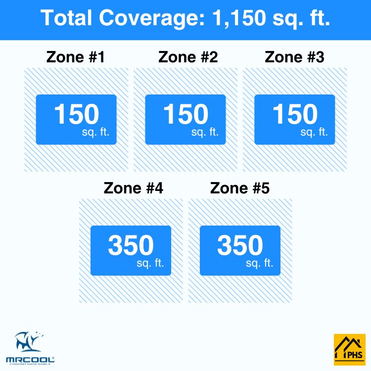 • Five Rooms, Perfect Comfort: Heat or cool five spaces that are 150 sq. ft., 150 sq. ft., 150 sq. ft., 350 sq. ft. and 350 sq. ft. each with independent temperature control for personalized comfort.
