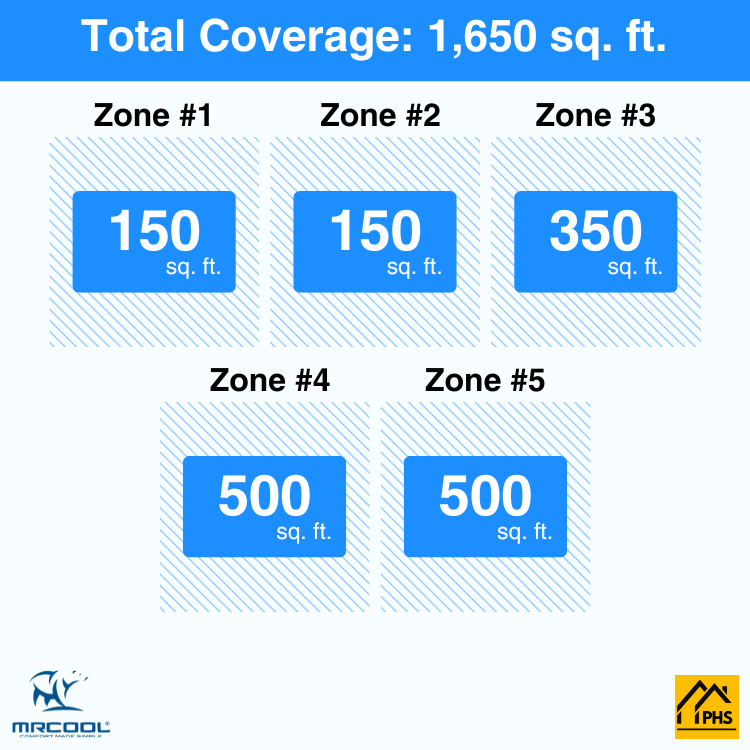 • Five Rooms, Perfect Comfort: Heat or cool five spaces that are 150 sq. ft., 150 sq. ft., 350 sq. ft., 500 sq. ft. and 500 sq. ft. each with independent temperature control for personalized comfort.