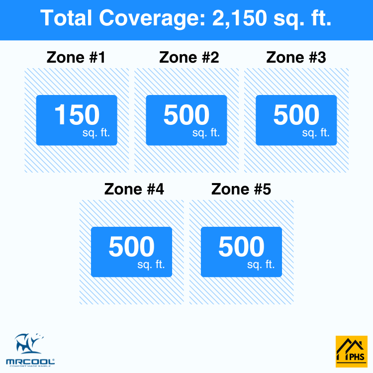 • Five Rooms, Perfect Comfort: Heat or cool five spaces that are 150 sq. ft., 500 sq. ft., 500 sq. ft., 500 sq. ft. and 500 sq. ft. each with independent temperature control for personalized comfort.