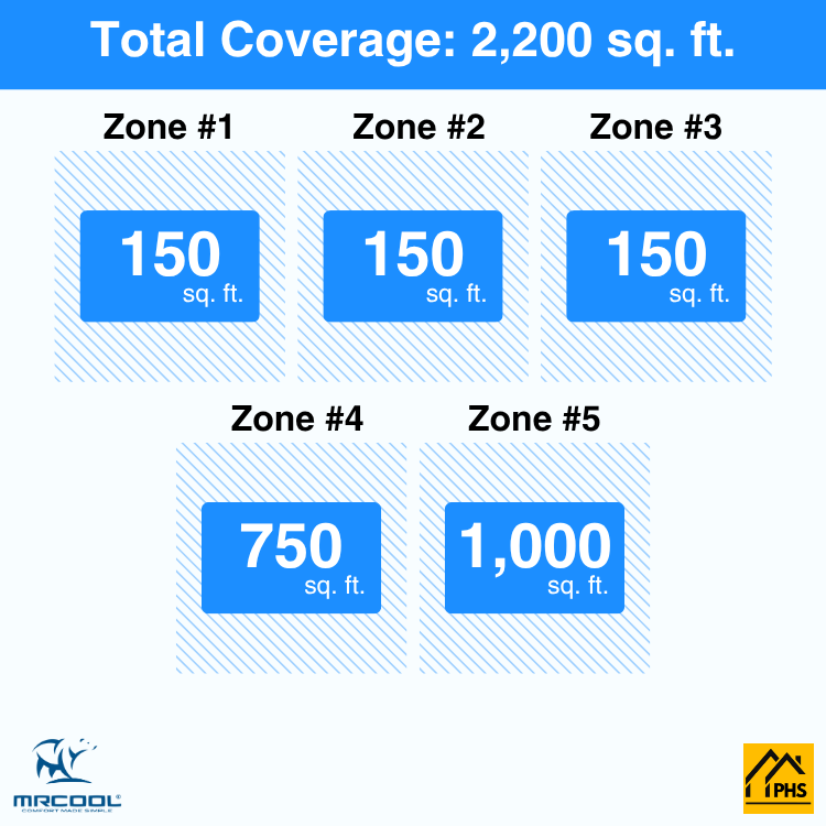Five Rooms, Perfect Comfort: Heat or cool five spaces that are 150 sq. ft., 150 sq. ft., 150sq. ft., 750 sq. ft. and 1,000 sq. ft. each with independent temperature control for personalized comfort.