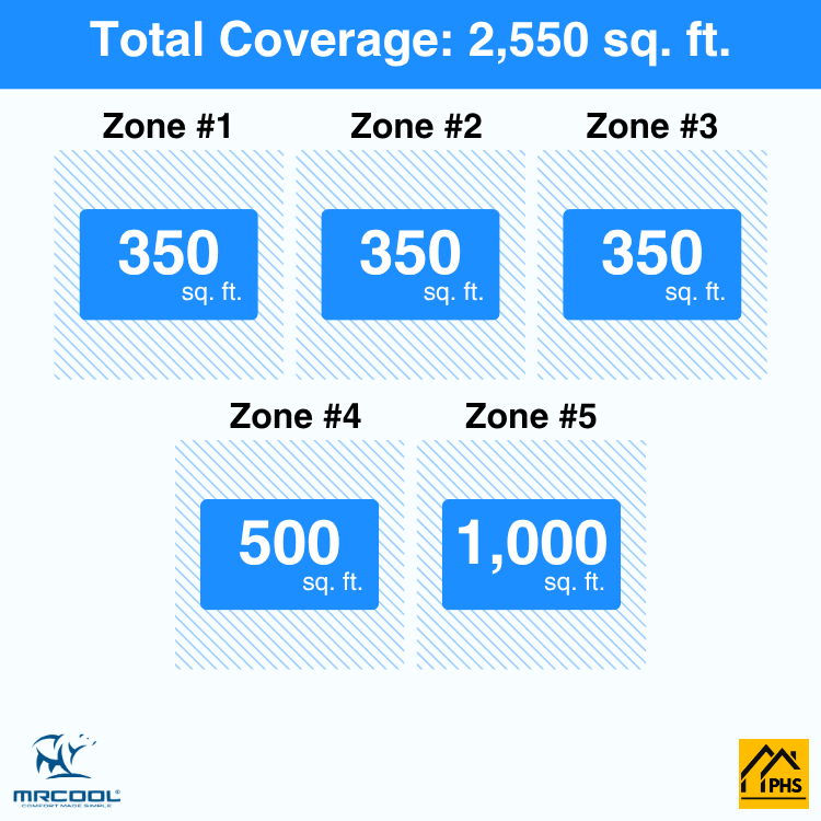 Five Rooms, Perfect Comfort: Heat or cool five spaces that are 350 sq. ft., 350 sq. ft., 500sq. ft., 500 sq. ft. and 1,000 sq. ft. each with independent temperature control for personalized comfort.