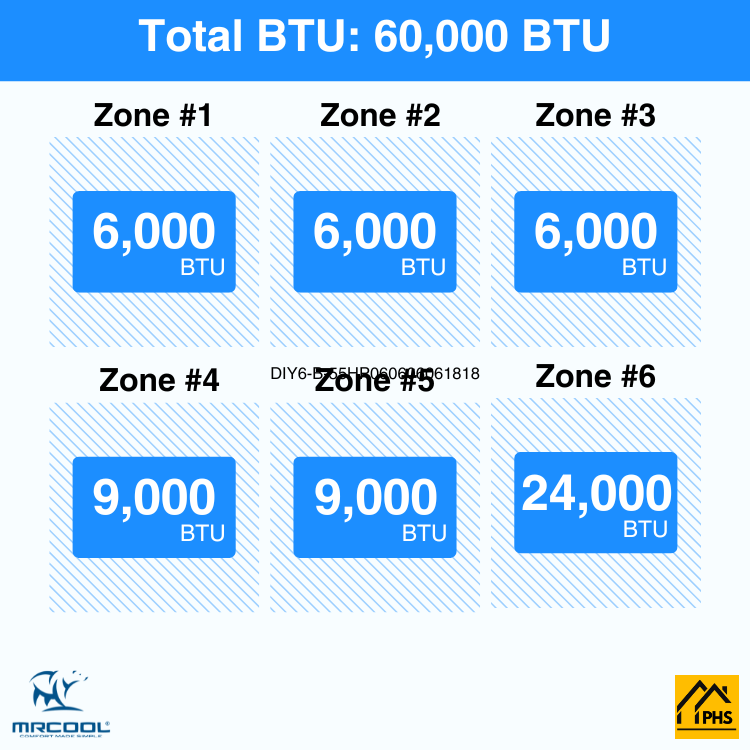 MRCOOL DIY 5th Gen 6-Zone 60,000 BTU Ductless Mini Split Air Conditioner & Heat Pump (6K+6K+6K+9K+9K+24K), DIY6-B-55HP